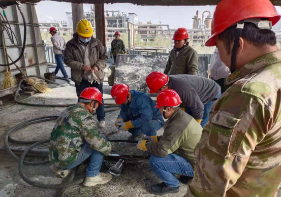 期間,此次檢修的片區業務指導領導有總調度長徐建華、設備工程師劉迪文深入現場進行指導工作。公司參檢人員為了搶時間,搶進度,副總經理梁軍組織人員一方面實行車輪戰,以最快的速度清理完窯內物料,另一方面組織裝置專業技術人員鉆入熾熱的窯體內,進行窯磚回填。經過全體人員的連續不間斷的奮戰,比計劃提前了3個小時。為確保搶修安全和質量,公司總經理、副總經理、安環生產科科長及成品裝置長始終盯靠在現場,對搶修工作進行指導和協調。