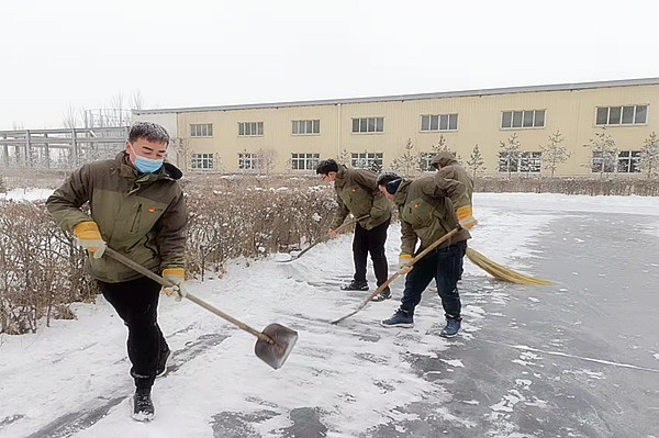 此次掃雪活動,充分體現公司職工良好的集體責任感和團隊協作精神。大家眾志成城,發揚吃苦耐勞的奉獻精神。員工們的熱情和團結的力量給寒冷的天氣增添了濃濃暖意。瑞雪兆豐年,2022年,在新的起跑線、在全面貫徹落實董事長年終會議精神,凝心聚力,腳踏實地,奮力推動公司、裝置生產經營上實現開門紅、全年紅。