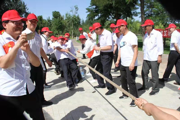 為豐富活動形式,增強黨員的交流互動,放松緊張的工作情緒,活動結(jié)合學(xué)黨章黨規(guī),組織開展了黨的知識答題接力賽和拔河比賽。拔河比賽中,三個支部選拔精兵強將,循環(huán)比賽。經(jīng)過激烈比拼,資源再生公司黨支部獲得第一名,公司黨委為優(yōu)勝隊頒發(fā)了紀念品。