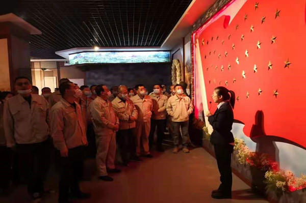 活動結束前,大家聚集在黨旗下,鄭重公諾,表示要以昂揚的姿態奮進“十四五”、奮進新征程,爭當排頭兵,干在先,走在前;要不忘初心、牢記使命,繼承先輩遺志,讓紅色基因代代相傳,表達對革命先烈的感恩與敬仰。