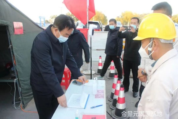 2022年10月18日下午,固原市常務副市長任立新一行蒞臨金昱元化工集團固原片區調研疫情防控工作,集團公司副總裁、片區總經理王立軍,副總經理馬建東、湯洪冰,綜合管理部部長劉志江陪同。