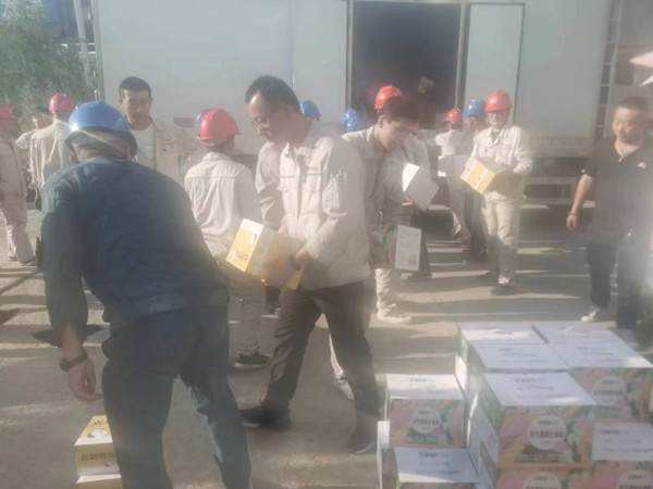 工作人員將防暑品送到生產一線,將濃濃關愛送到員工們手中,員工們在酷熱的夏天如飲甘泉,神清氣爽。