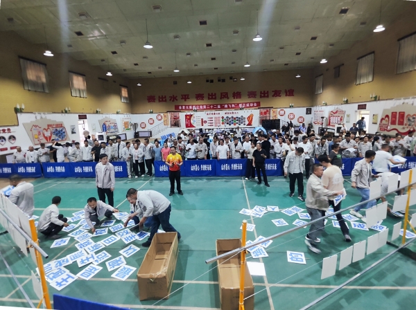 隨著裁判一聲令下,企業(yè)理念拼字比賽迎來激動人心的時刻。各參賽隊(duì)員不急不躁、有條不紊,大家集思廣益、默契配合,在最短時間內(nèi)準(zhǔn)確拼出“踐行綠色發(fā)展 留駐青山綠水”“山水昱心 共創(chuàng)好未來”“安全就是幸福 安全就是效益”等橫幅。